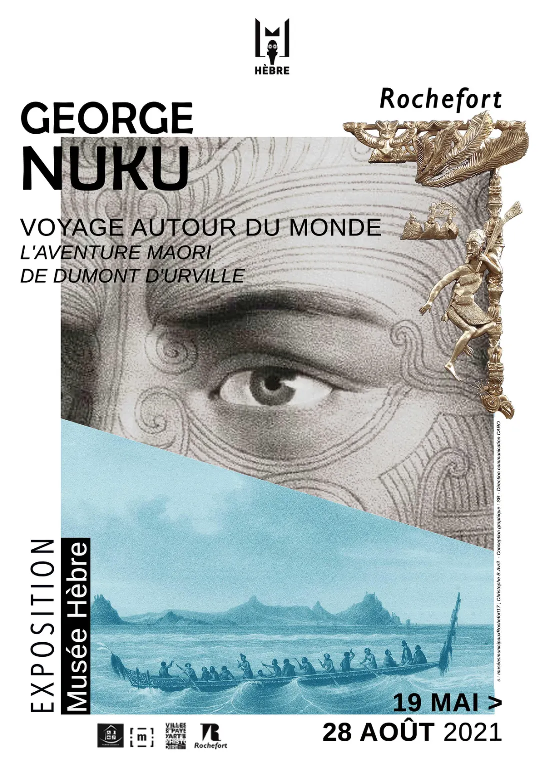 Le Musée Hèbre présentait une série de gravures de « l’Atlas Historique du Voyage de la Corvette L’Astrolabe exécuté pendant les années 1826, 1827, 1828, 1829 sous le commandement de M. Jules Dumont d’Urville capitaine de Vaisseau». Des dessins du peintre de marine Louis Le Breton, qui a accompagné Dumont d’Urville sur l’Astrolabe, ainsi que des gravures des voyages de l’Uranie, la Coquille et l’Astrolabe en Nouvelle-Zélande, ont été prêtés par le Musée des Beaux-Arts de Chartres. Des pièces exceptionnelles, telles qu’un collier d’hameçons, une flûte et une boîte à trésors maori, appartenant à la même institution, ont été exposés dans des vitrines conçues par George Nuku.